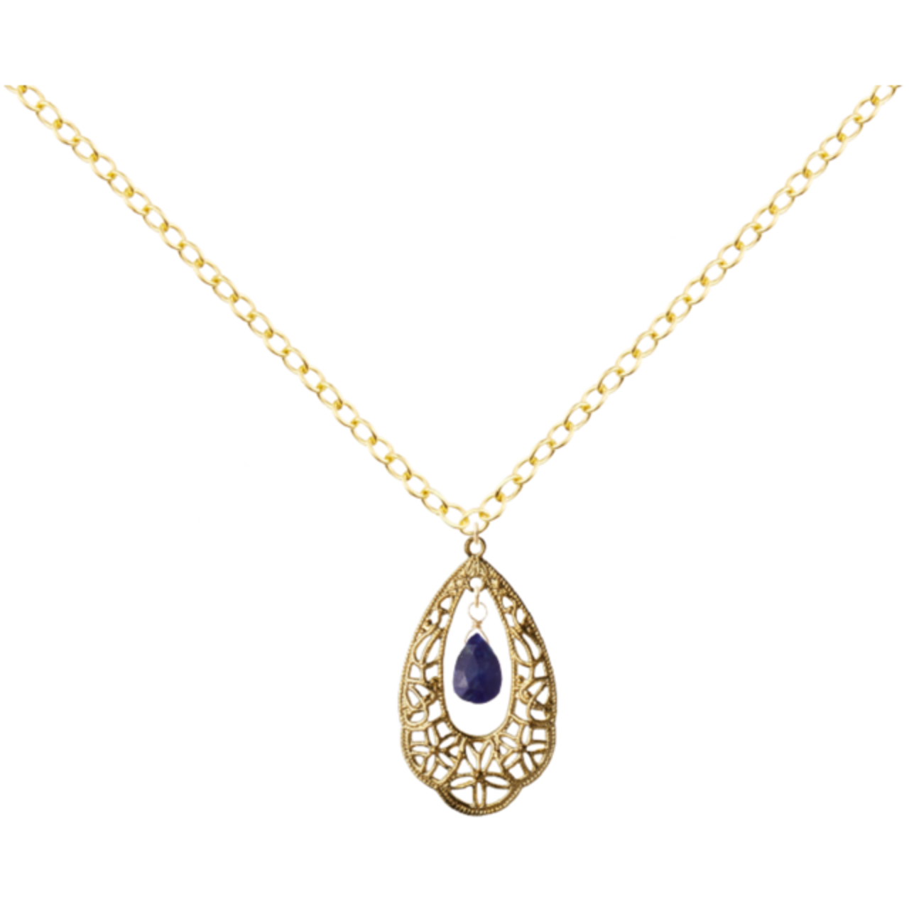 『ラピスペアシェイプ・スカシドロップフープ・14KGFアズキチェーンネックレス』
