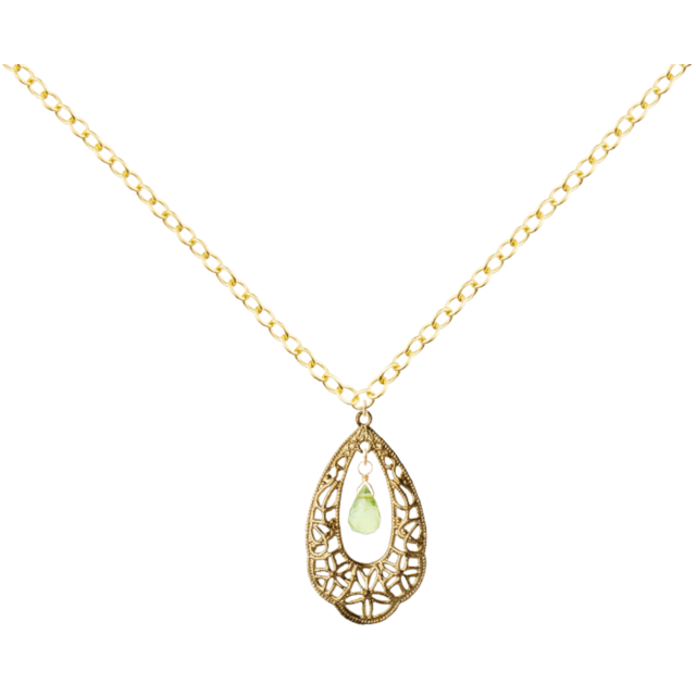 『ペリドットドロップ・スカシドロップフープ・14KGFアズキチェーンネックレス』