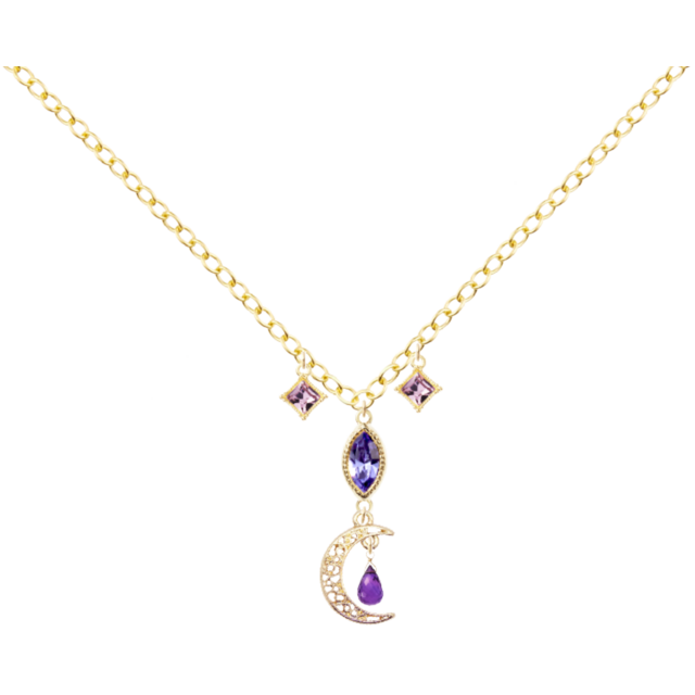 『アメジストドロップ・三日月チャーム・14KGFアズキチェーンネックレス』