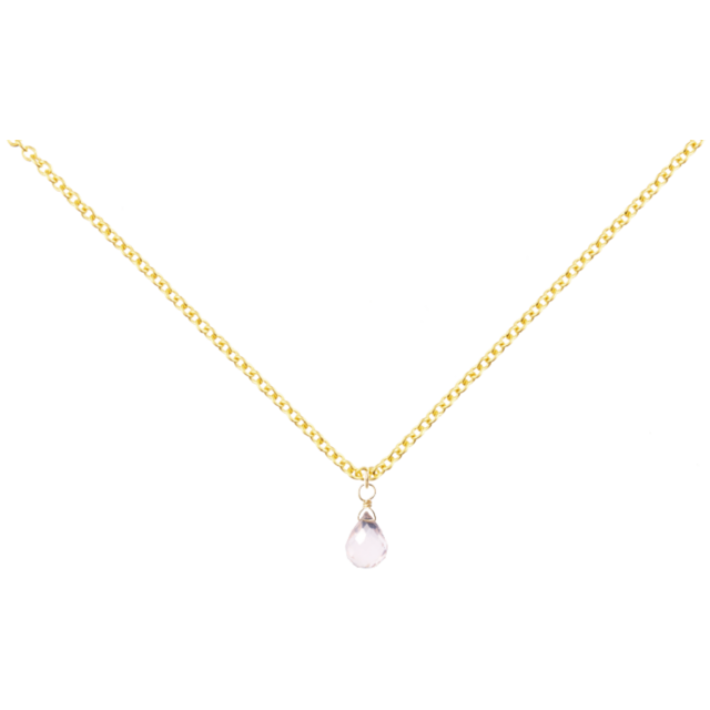 『天然石ローズクオーツドロップ・14KGFアズキチェーンネックレス』